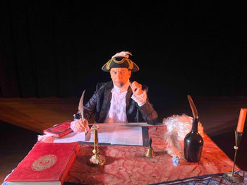 Sous l'encre de sa plume à son bureau, Jean de La Fontaine se dévoile.
